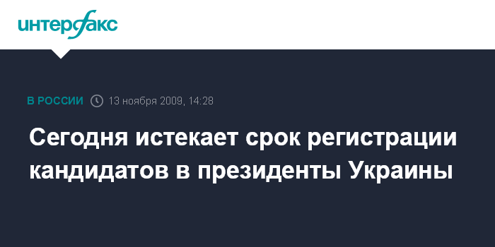 Киев. 13 ноября. INTERFAX.RU - 13 ноября истекает срок регистрации кандидатов в президенты Украины, пока ЦИК зарегистрировал 18 претендентов на высшую государственную должность.