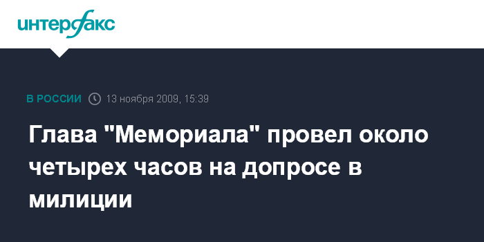 Глава "Мемориала" провел около четырех часов на допросе в милиции