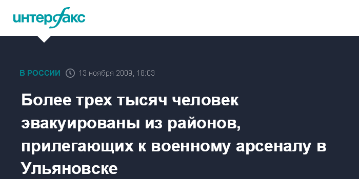 Москва. 13 ноября. INTERFAX.RU - Более трех тысяч человек эвакуированы из районов, прилегающих к военному арсеналу в Ульяновске, где в пятницу возник сильный пожар, сообщил "Интерфаксу" губернатор Ульяновской области Сергей Морозов.