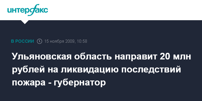 Ульяновская область направит 20 млн рублей на ликвидацию последствий пожара - губернатор