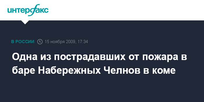Казань/Набережные Челны. 15 ноября. INTERFAX.RU - Состояние одной из пострадавших при пожаре утром в воскресенье в диско-баре "Атмосфера" в поселке ГЭС (в черте Набережных Челнов, Татарстан), остается тяжелым. "Девушка в коме, подключена к аппарату искусственного дыхания, но динамика у нее положительная", - сообщил агентству "Интерфакс-Поволжье" главный врач Больницы скорой медицинской помощи (БСМП) Набережных Челнов Ильдар Хайруллин.