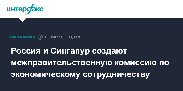 Сингапур. 16 ноября. ИНТЕРФАКС - Россия и Сингапур объявили о создании межправительственной комиссии, президент РФ Дмитрий Медведев надеется, что она станет надежным механизмом в развитии двустороннего сотрудничества.