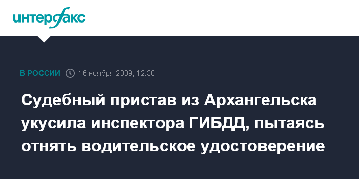 Москва. 16 ноября. INTERFAX.RU - Приморский районный суд Архангельской области рассмотрит по существу уголовное дело в отношении судебного пристава-исполнителя, укусившей инспектора ГИБДД при попытке отобрать водительское удостоверение нарушившего правила родственника.