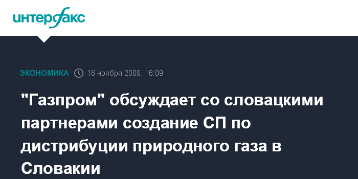 "Газпром" обсуждает со словацкими партнерами создание СП по дистрибуции природного газа в Словакии
