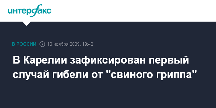 В Карелии зафиксирован первый случай гибели от "свиного гриппа"