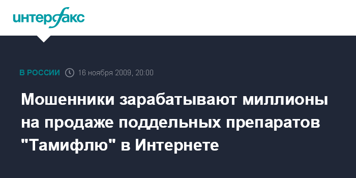 Лондон. 16 ноября. INTERFAX.RU - Хакеры из России активно занимаются продажей поддельных лекарственных препаратов "Тамифлю", применяемых против гриппа, говорится в исследовании, опубликованном в понедельник на сайте британской антивирусной компании "Софос".