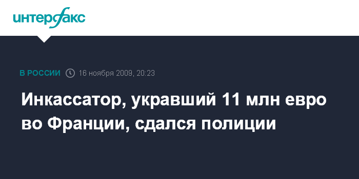 Париж. 16 ноября. INTERFAX.RU - Французский инкассатор, обвиняемый в краже 11,6 млн евро, сдался в понедельник полиции в Монако, сообщают парижские СМИ.