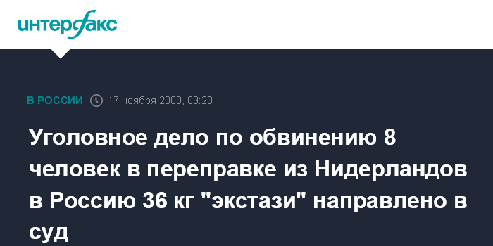 Уголовное дело по обвинению 8 человек в переправке из Нидерландов в Россию 36 кг "экстази" направлено в суд