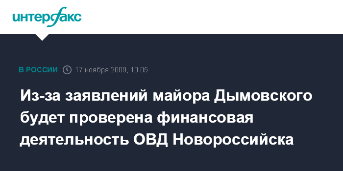 Из-за заявлений майора Дымовского будет проверена финансовая деятельность ОВД Новороссийска