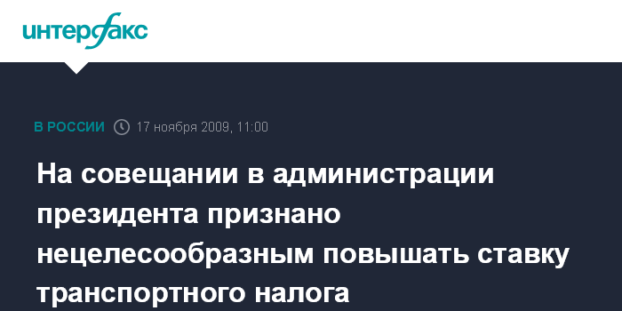 На совещании в администрации президента признано нецелесообразным повышать ставку транспортного налога