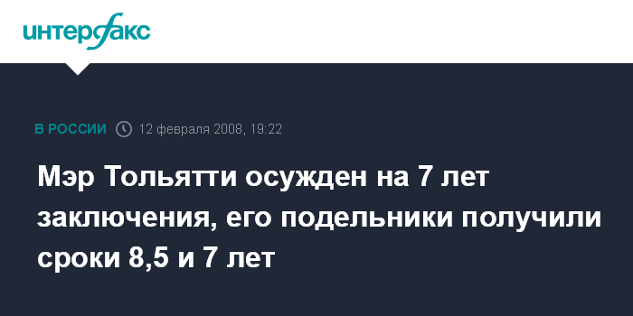 Мэр Тольятти осужден на 7 лет заключения, его подельники получили сроки 8,5 и 7 лет