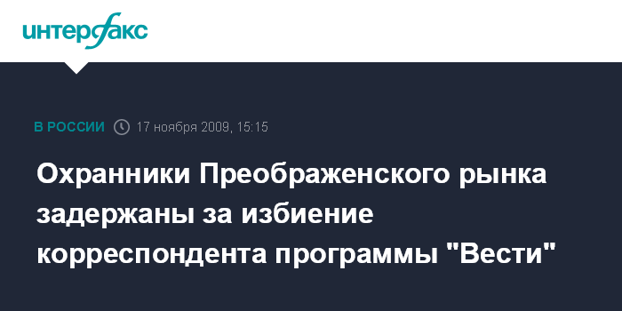 Охранники Преображенского рынка задержаны за избиение корреспондента программы "Вести"