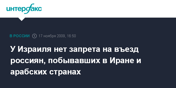 У Израиля нет запрета на въезд россиян, побывавших в Иране и арабских странах