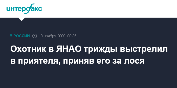 Москва. 18 ноября. INTERFAX.RU – Житель села Мужи Шурышкарского района Ямало-Ненецкого автономного округа привлечен к уголовной ответственности за случайное убийство своего знакомого на охоте.