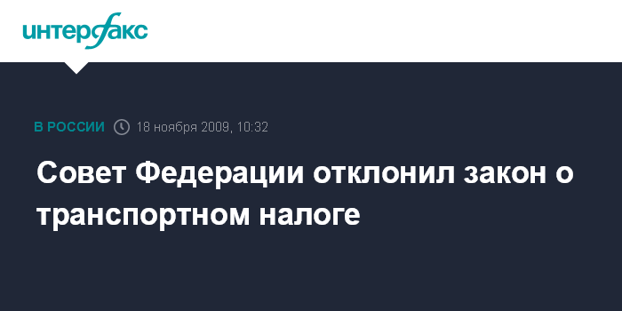 Москва. 18 ноября. INTERFAX.RU – Совет Федерации РФ на заседании в среду отклонил закон, который предусматривал увеличение налоговых ставок в два раза по всем категориям транспортных средств.