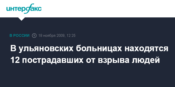 Москва. 18 ноября. INTERFAX.RU – В больницах Ульяновска находятся на лечении 12 человек, пострадавших в результате взрывов на складах ВМФ 13 ноября.