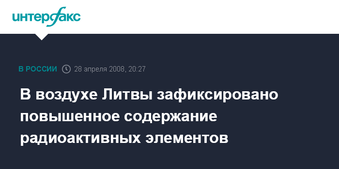 Вильнюс/Санкт-Петербург. 28 апреля. ИНТЕРФАКС - Радиологическая лаборатория Агентства охраны окружающей среды Литвы отметила некоторое повышение количества в воздухе радиоактивных элементов.