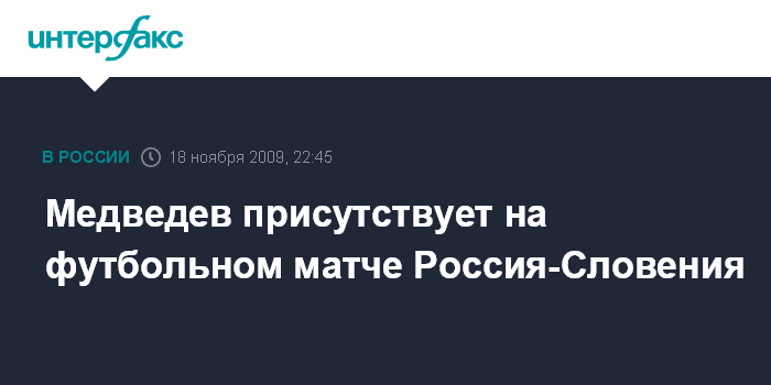 Марибор (Словения). 18 ноября. ИНТЕРФАКС - Президент России Дмитрий Медведев приехал на стадион словенского города Марибор, где проходит матч между сборными России и Словении, борющимися за путевку на чемпионат мира по футболу 2010 года.