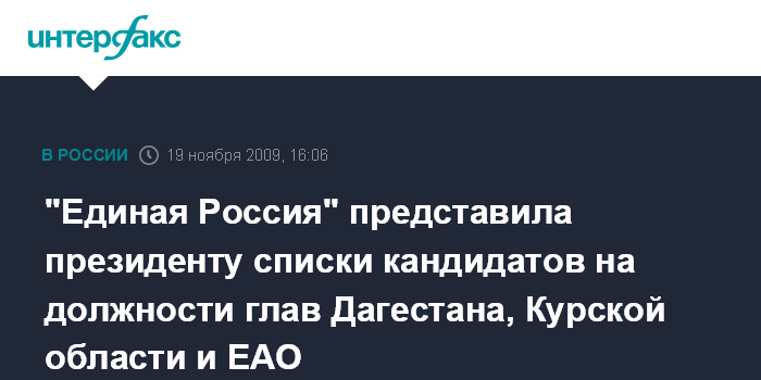 "Единая Россия" представила президенту списки кандидатов на должности глав Дагестана, Курской области и ЕАО