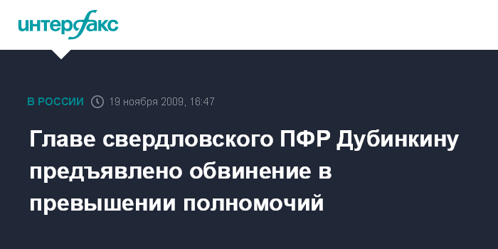 Главе свердловского ПФР Дубинкину предъявлено обвинение в превышении полномочий