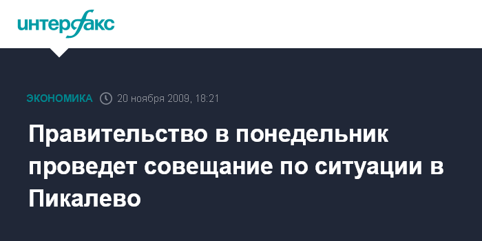 Правительство в понедельник проведет совещание по ситуации в Пикалево