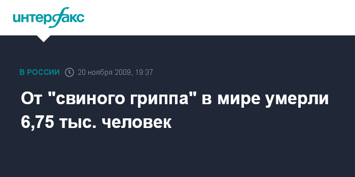 От "свиного гриппа" в мире умерли 6,75 тыс. человек