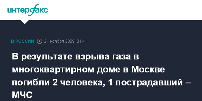 В результате взрыва газа в многоквартирном доме в Москве погибли 2 человека, 1 пострадавший – МЧС