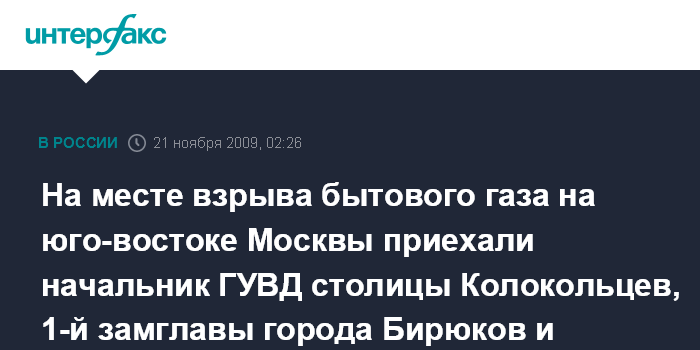 На месте взрыва бытового газа на юго-востоке Москвы приехали начальник ГУВД столицы Колокольцев, 1-й замглавы города Бирюков и главный пожарный Климкин