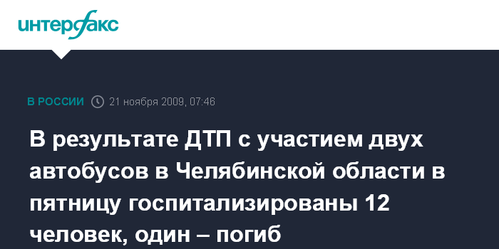 В результате ДТП с участием двух автобусов в Челябинской области в пятницу госпитализированы 12 человек, один – погиб