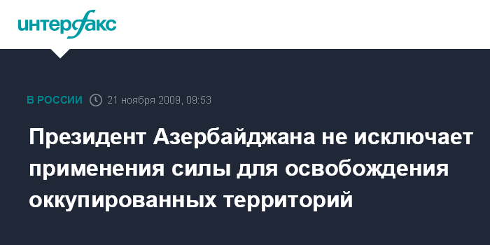 Президент Азербайджана не исключает применения силы для освобождения оккупированных территорий