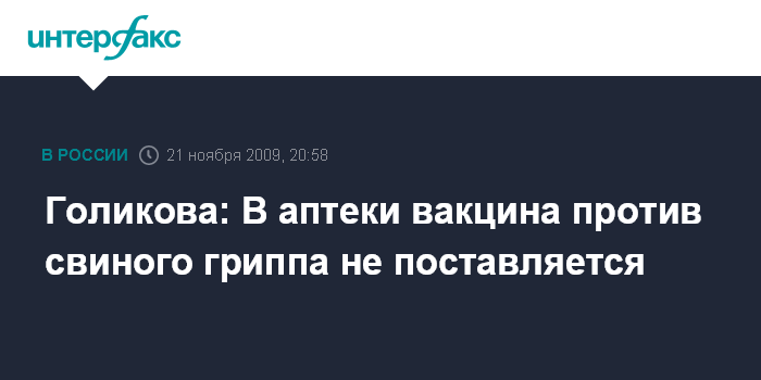Голикова: В аптеки вакцина против свиного гриппа не поставляется