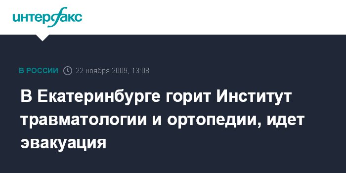 Екатеринбург. 22 ноября. INTERFAX.RU - В центре Екатеринбурга произошел пожар в Институте травматологии и ортопедии. В настоящее время производится эвакуация пациентов и персонала медицинского учреждения, сообщили агентству "Интерфакс-Урал" в воскресенье в пресс-службе ГУ МЧС РФ по Свердловской области. Сигнал о возгорании поступил около 12:00 мск. Сведений о пострадавших пока не поступало.