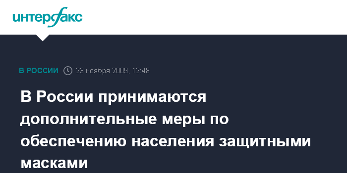 В России принимаются дополнительные меры по обеспечению населения защитными масками