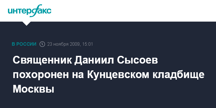 Священник Даниил Сысоев похоронен на Кунцевском кладбище Москвы