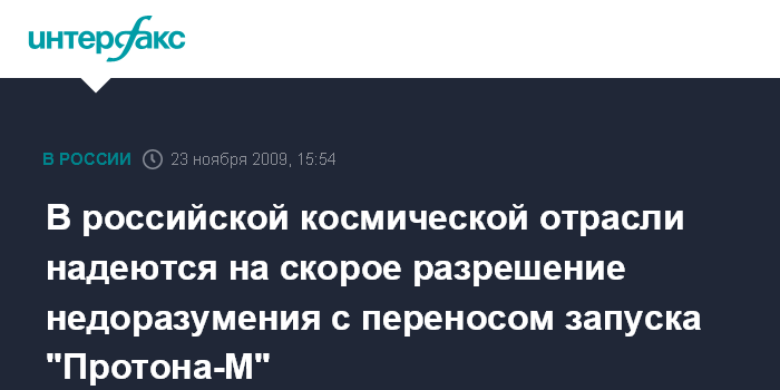 В российской космической отрасли надеются на скорое разрешение недоразумения с переносом запуска "Протона-М"