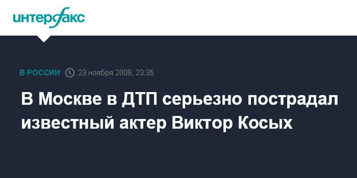 Москва. 23 ноября. ИНТЕРФАКС-МОСКВА - В Москве в дорожно-транспортном происшествии серьезно пострадал известный киноактер Виктор Косых.
