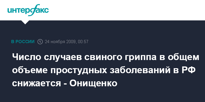 Число случаев свиного гриппа в общем объеме простудных заболеваний в РФ снижается - Онищенко