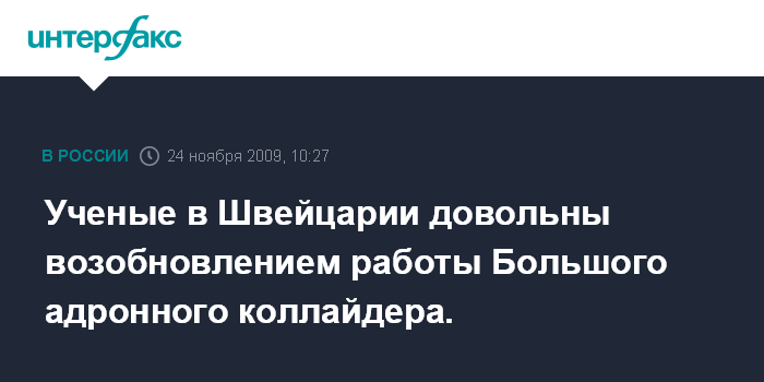 Москва. 24 ноября. INTERFAX.RU - Специалисты Европейского центра ядерных исследований (ЦЕНТР) довольны успешным возобновлением работы Большого адронного коллайдера, пишет швейцарская газета "Тан".