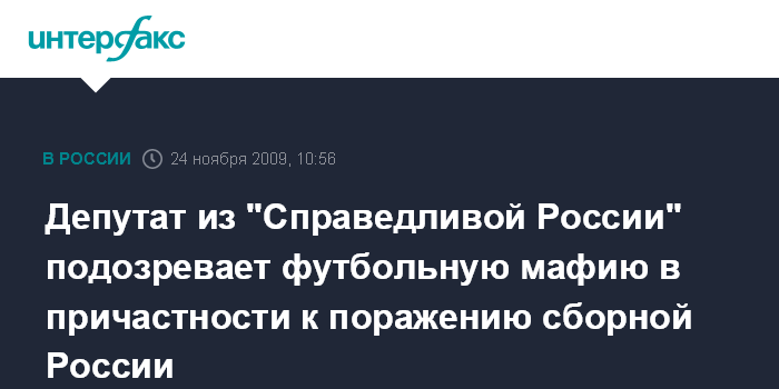 Депутат из "Справедливой России" подозревает футбольную мафию в причастности к поражению сборной России
