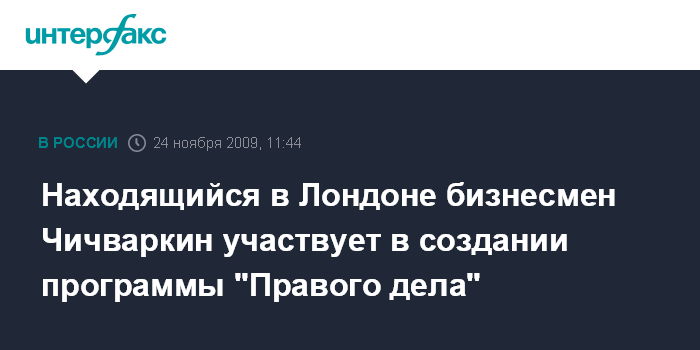 Как рассказал "Интерфаксу" во вторник лидер московского отделения "Правого дела" Игорь Трунов, он побывал в Лондоне, где встретился с Е.Чичваркиным.