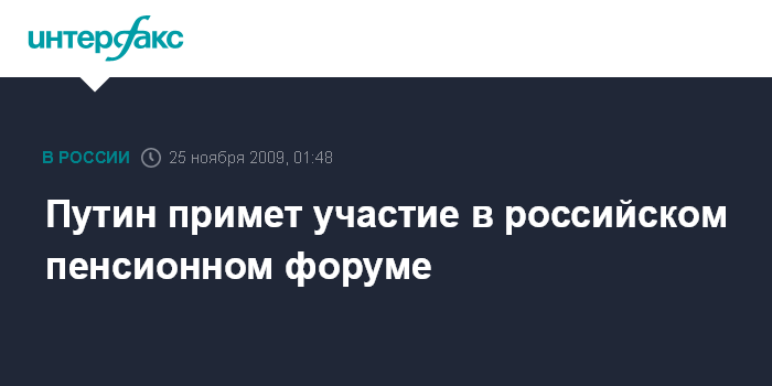 Москва. 25 ноября. ИНТЕРФАКС - Премьер-министр РФ Владимир Путин в среду примет участие во втором ежегодном пенсионном форуме "Реализация нового пенсионного законодательства и актуальные проблемы развития пенсионной системы".