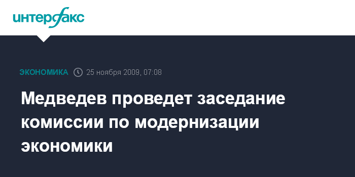 Москва. 25 ноября. ИНТЕРФАКС - Президент РФ Дмитрий Медведев проведет в среду очередное, шестое заседание комиссии по модернизации и технологическому развитию российской экономики.