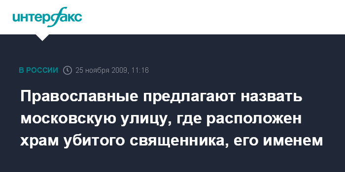 Православные предлагают назвать московскую улицу, где расположен храм убитого священника, его именем