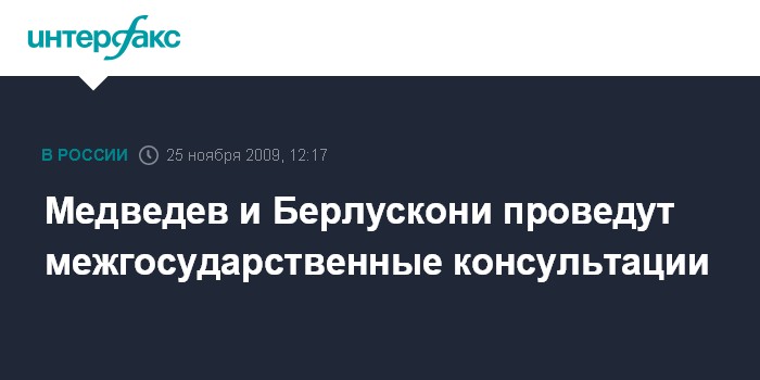 Медведев и Берлускони проведут межгосударственные консультации