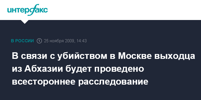 В связи с убийством в Москве выходца из Абхазии будет проведено всестороннее расследование