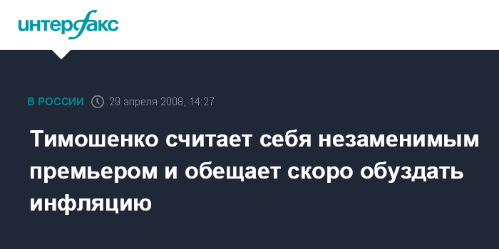 Тимошенко считает себя незаменимым премьером и обещает скоро обуздать инфляцию