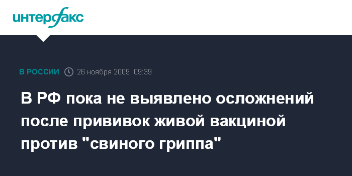 Таким образом она прокомментировала сообщения некоторых СМИ о том, что в России вакцинация против "свиного гриппа" с помощью живой вакцины в ряде случаев приводит к серьезным осложнениям.