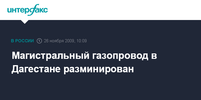 Москва. 26 ноября. INTERFAX.RU - Взрывотехники УФСБ России по Дагестану обезвредили взрывное устройство, обнаруженное вчера на 518-м км магистрального газопровода "Моздок-Газимагомед" в Каякентском районе республики, сообщили "Интерфаксу" в Группе общественных связей УФСБ по региону.