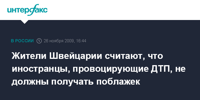 Жители Швейцарии считают, что иностранцы, провоцирующие ДТП, не должны получать поблажек