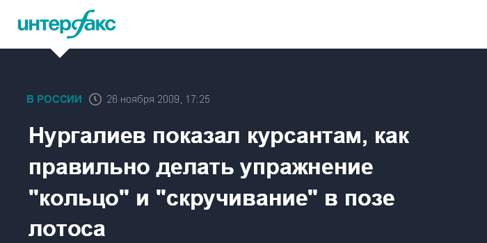 Нургалиев в ходе посещения в четверг базы ОМОН "Зубр" в подмосковном Щелкове посетил кабинет психологической регуляции. Сняв китель, глава МВД показал курсантам, как самостоятельно делать массаж головы, пальцев и ладоней рук. Восхищение присутствующих курсантов и журналистов вызвало показанное им упражнение по так называемому "скручиванию" в положении "сидя по-турецки" и "в позе лотоса".